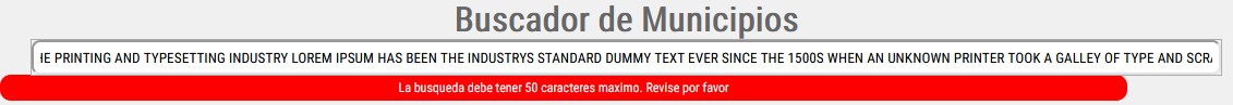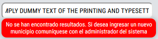 Si el tamaño del valor ingresado tiene entre 3 y 50 caracteres y existe en la base de datos uno o varios municipios que contengan los valores ingresados, el sistema despliega el listado indicando: