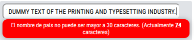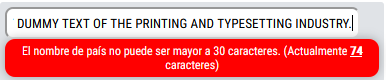 No puede tener un tamaño mayor a 30 caracteres, no importa si son números, letras o caracteres especiales. Si el valor es mayor, muestra entre paréntesis el tamaño actual del valor ingresado.