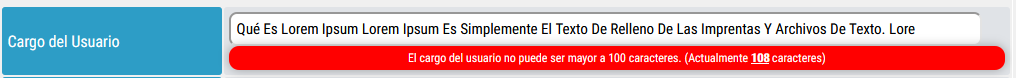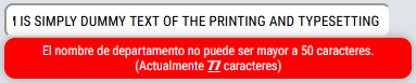 No puede tener un tamaño mayor a 50 caracteres, no importa si son números, letras o caracteres especiales. Si el valor es mayor, muestra entre paréntesis el tamaño actual del valor ingresado.