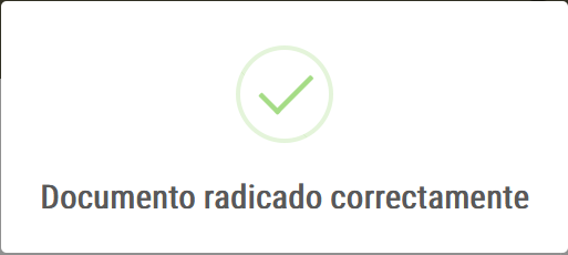 Si no hay errores que impidan registrar los cambios realizados, al hacer clic sobre el botón "Radicar Documento" el sistema confirma la acción guardando el registro en la base de datos del radicado creado, el usuario que ha realizado la modificación con fecha, hora, IP y navegador desde el cual se realizó la acción.