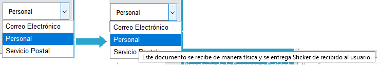 Personal = Cuando el documento se recibe de manera física y se entrega Sticker de recibido al usuario.