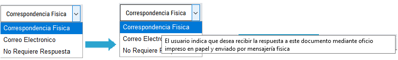Correspondencia Física = Cuando el usuario indica que quiere recibir la respuesta a este documento mediante oficio impreso en papel y enviado por mensajería en formato físico (papel). Al seleccionar esta opción se debe asegurar que en el decimoprimer dato de este mismo formulario
