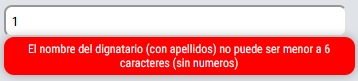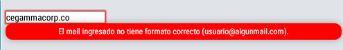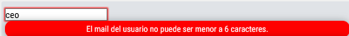 Si se deja de cumplir alguna de estas condiciones el sistema muestra un error en color rojo.