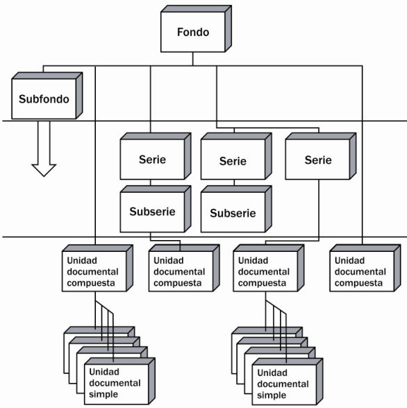 Facilitando el acceso a la información contenida en el acervo documental, de una forma Jerárquica a tendiendo los conceptos básicos del Fondo , Sección del Fondo, Subsección del Fondo, Serie, Subserie y tipologías documentales que establecen un principio de diferenciación y estratificación de las diversas agrupaciones documentales y funcionales que conforman la memoria institucional.