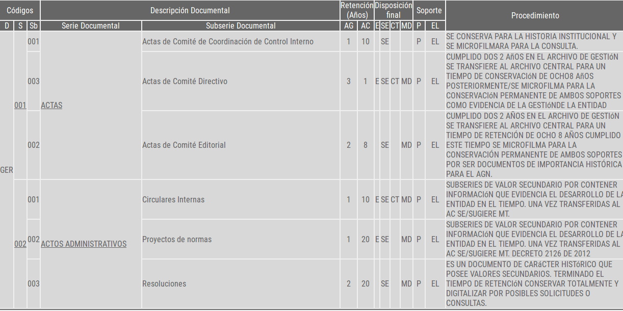 Según la ley 594 de 2000 (Ley general de Archivos) es el listado de series y subseries, a las cuales se asigna el tiempo de permanencia en cada etapa del ciclo vital de los documentos.